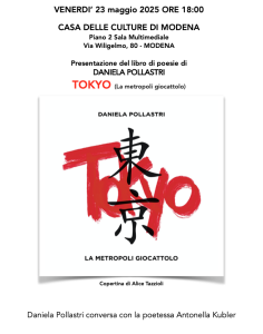 Venerdì, 23 maggio, alle ore 18, presso la Casa delle Culture (Via Wiligelmo 80) Daniela Pollastri conversa con la poetessa Antonella Kubler per presentare il suo libro: