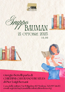 Giovedì, 21 ottobre, alle ore 16, si terrà un nuovo incontro organizzato dal Gruppo Bauman.