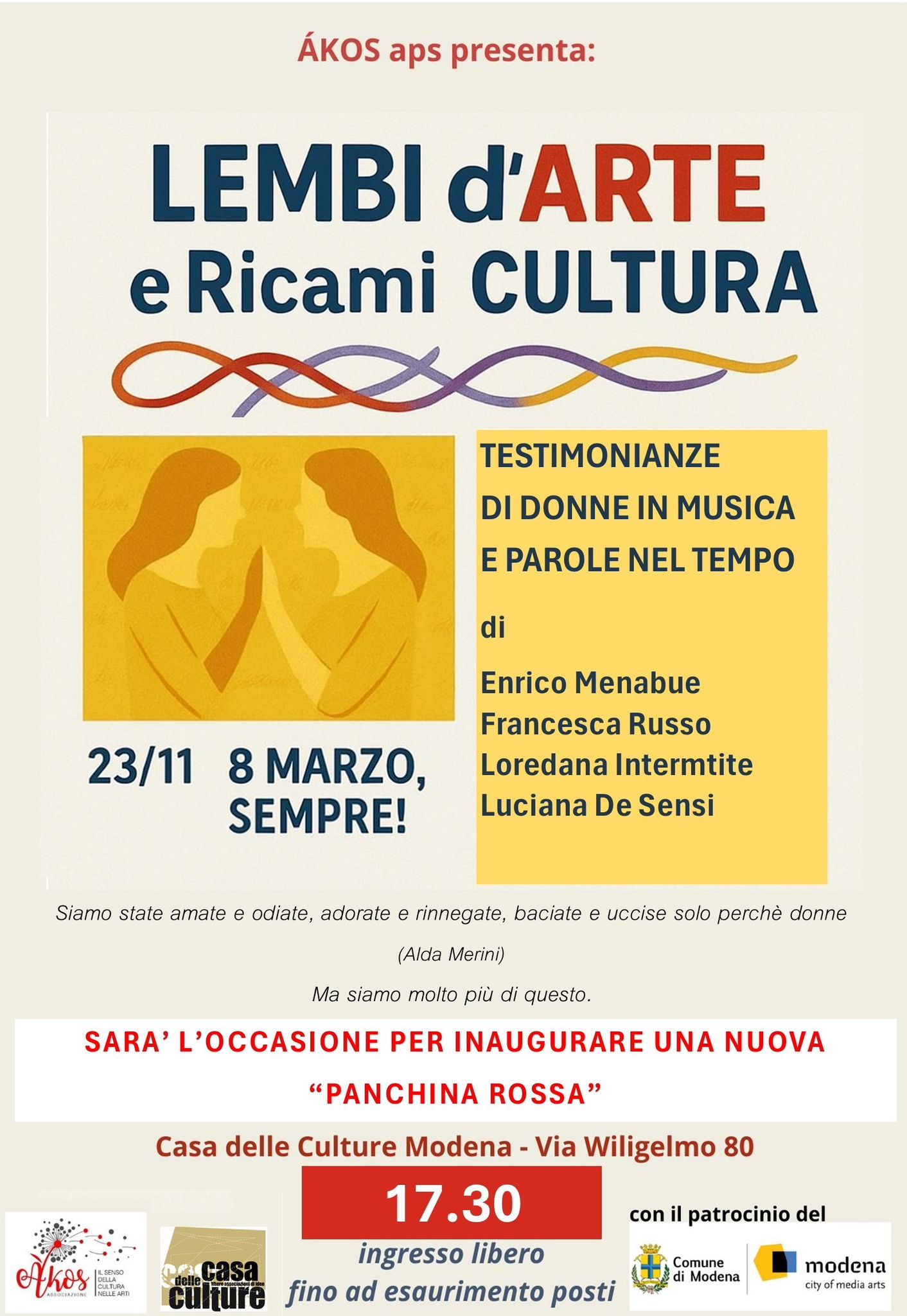 Sarà l’occasione per inaugurare una nuova “panchina rossa” e sarà con noi Andrea Bortolamasi, assessore alla cultura del Comune di Modena.